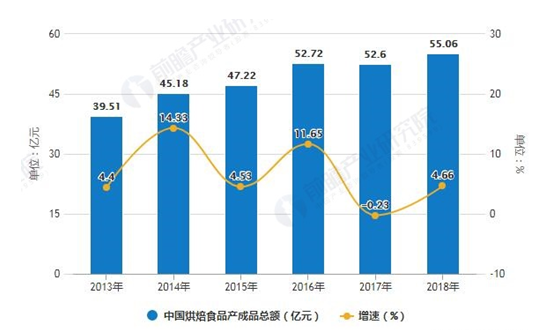 2013-2018年中國烘焙食品產成品總額統(tǒng)計及增長情況